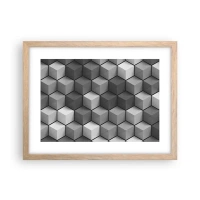 Plakat i ramme af lyst egetræ - Kubistisk puslespil - 50x40 cm