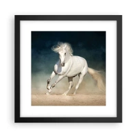 Vægur, Uret - En hvid hest galoperer hen over sandet mod en mørk himmel. - 30x30cm - Frihed i en ren tilstand - Moderne vægdekoration til stue, køkken og soveværelse ARTTOR