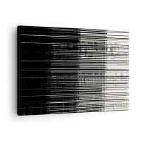 Lærredstryk - Billede på lærred - Abstrakt komposition af linjer i kontrasterende sort og hvid - 70x50cm - Bølger og vibrationer - Moderne vægdekoration til stue og soveværelse ARTTOR