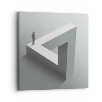 Vægur, Uret - En mand stående oven på en umulig geometrisk figur. - 30x30cm - Og dog er det muligt - Moderne vægdekoration til stue, køkken og soveværelse ARTTOR