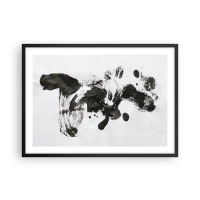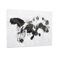 Billede på glas - Abstrakt sort plet og penselstrøg på en hvid baggrund - 70x50cm - En metode i galskaben? - Moderne vægdekoration til stue og soveværelse ARTTOR