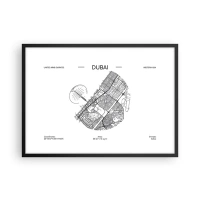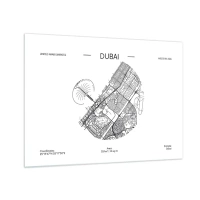 Billede på glas - Et minimalistisk kort over Dubai i sort-hvid stil. - 70x50cm - Dubais anatomi - Moderne vægdekoration til stue og soveværelse ARTTOR