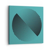 Lærredstryk - Billede på lærred - En minimalistisk cirkel med linjer på en turkis baggrund. - 70x50cm - Cirklen - en geometrisk variation - Moderne vægdekoration til stue og soveværelse ARTTOR