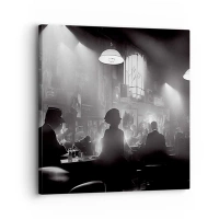 Lærredstryk - Billede på lærred - Sort-hvid jazznatklubscene - 70x50cm - I en jazzet stemning - Moderne vægdekoration til stue og soveværelse ARTTOR