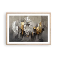 Plakat i ramme af lyst egetræ - Komposition lavet af is og lys - 100x70 cm