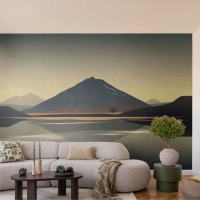 Fototapet Standard Eco - Minimalistisk bjerglandskab med spejling i vandet - 100x70cm - Spejlrefleksion - Moderne vægdekoration til stue og soveværelse ARTTOR