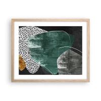Plakat i ramme af lyst egetræ - Farverig abstraktion med en guldflager - 50x40 cm