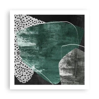 Plakat i ramme af lyst egetræ - Farverig abstraktion med en guldflager - 60x60 cm