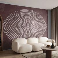 Billede på glas - Symmetriske linjer i form af et øje på en bordeaux baggrund - 70x50cm - Rummet taler - Moderne vægdekoration til stue og soveværelse ARTTOR