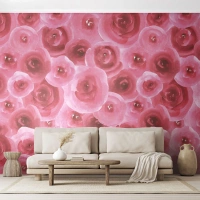 Fototapet Standard Eco - Røde og lyserøde roser i en gennemgående akvarelstil - 100x70cm - Roser under og over - Moderne vægdekoration til stue og soveværelse ARTTOR