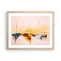 Plakat i ramme af lyst egetræ - En aften i havnen - 50x40 cm