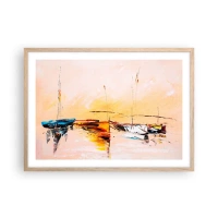 Plakat i ramme af lyst egetræ - En aften i havnen - 100x70 cm