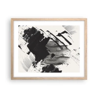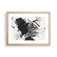Plakat i ramme af lyst egetræ - Abstraktion - det sortes udtryk - 50x40 cm