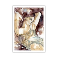 Plakat i ramme af lyst egetræ - I stemning af lilla - 70x100 cm