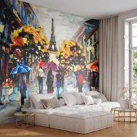 Fototapet Standard Eco - Efterårs Paris i regnvejr med farverige paraplyer - 100x70cm - Særligt smuk om efteråret - Moderne vægdekoration til stue og soveværelse ARTTOR