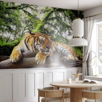 Fototapet Standard Eco - En tiger hviler i en tæt tropisk jungle - 100x70cm - Med venlig hilsen - Moderne vægdekoration til stue og soveværelse ARTTOR