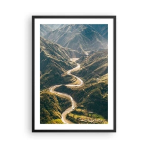 Plakat i sort ramme - En malerisk udsigt over floden, der snor sig gennem bjergdale - 50x70cm - Direkte fra hjertet af bjergene - Moderne vægdekoration til stue og soveværelse ARTTOR