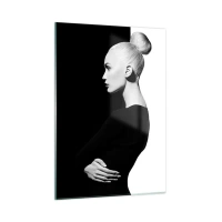 Plakat i sort ramme - Et minimalistisk portræt af en kvinde i en sort-hvid komposition - 50x70cm - Blot en kvinde - Moderne vægdekoration til stue og soveværelse ARTTOR