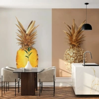 Fototapet Standard Eco - En halv ananas og en gylden ananas på en delt baggrund - 100x70cm - Ananas til os - Moderne vægdekoration til stue og soveværelse ARTTOR