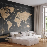 Fototapet Standard Eco - Dekorativt verdenskort i beige og sort vintagestil - 100x70cm - Grænserne for min verden - Moderne vægdekoration til stue og soveværelse ARTTOR