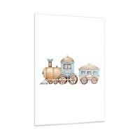 Plakat i sort ramme - Akvareltog i blå og beige nuancer - 50x70cm - Stående på stationen... - Moderne vægdekoration til stue og soveværelse ARTTOR