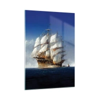 Plakat i sort ramme - Et sejlskib på åbent hav under fulde sejl i sollyset - 50x70cm - Den store herlighed! - Moderne vægdekoration til stue og soveværelse ARTTOR