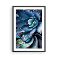 Plakat i sort ramme - Agave i blå og grønne nuancer - 50x70cm - Vital kraft - Moderne vægdekoration til stue og soveværelse ARTTOR