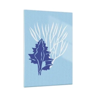 Plakat i sort ramme - Nautisk grafik af skaller og koraller på en blå baggrund - 50x70cm - Bladformede former - Moderne vægdekoration til stue og soveværelse ARTTOR