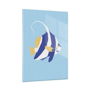 Plakat i sort ramme - En minimalistisk grafik af en eksotisk fisk på en blå baggrund. - 50x70cm - Savner tropisk vand - Moderne vægdekoration til stue og soveværelse ARTTOR