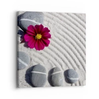 Vægur, Uret - Lyserød blomst med sten i sandet i zen-stil - 30x30cm - Energi og ro i den magiske naturcirkel - Moderne vægdekoration til stue, køkken og soveværelse ARTTOR