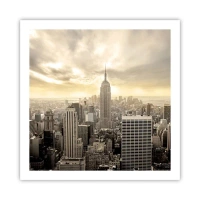 Plakat i ramme af lyst egetræ - New York vævet af grå - 60x60 cm