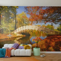 Fototapet Selvklæbende Deluxe Sticker - På den hvide bro af suk - Landskab, Parkere, træbro - 400x280 cm