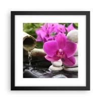Vægur, Uret - Lilla orkideer, bambus og sten ved vandkilden - 30x30cm - Du hviler allerede - Moderne vægdekoration til stue, køkken og soveværelse ARTTOR