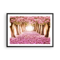 Lærredstryk - Billede på lærred - En allé med blomstrende træer i lyserøde nuancer - 70x50cm - Vejen til paradis - Moderne vægdekoration til stue og soveværelse ARTTOR