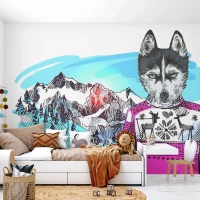 Fototapet Standard Eco - Ulv i fåreuld - Abstraktion, Ulv, For børn - 500x350 cm