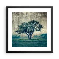 Plakat i ramme af lyst egetræ - Et æbletræ på en blå membran? - 40x40 cm