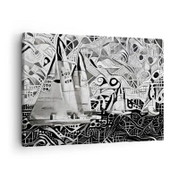 Lærredstryk - Billede på lærred - Abstrakte sejlbåde i en monokromatisk komposition - 70x50cm - Mellem bølgerne - Moderne vægdekoration til stue og soveværelse ARTTOR