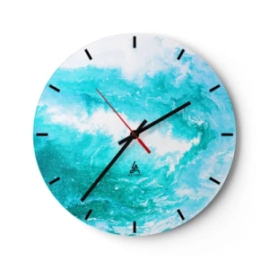 Vægur, Uret - Abstrakt bølge i nuancer af blå og turkis - 30x30cm - I kernen af elementet - Moderne vægdekoration til stue, køkken og soveværelse ARTTOR