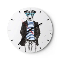 Vægur, Uret - En hund med briller og en sømandsskjorte - 30x30cm - En charme til hunden - Moderne vægdekoration til stue, køkken og soveværelse ARTTOR