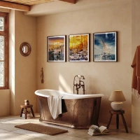 Plakat i ramme af lyst egetræ - Sten indfattet i guld og platin - 50x50 cm