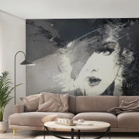 Fototapet Selvklæbende Deluxe Sticker - Bag et gråt slør - Kvindens ansigt, Sort og hvid, Øjne - 300x210 cm