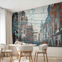 Fototapet Standard Eco - Abstrakt bypanorama i nuancer af blå og brun - 100x70cm - Et afmærket byspor - Moderne vægdekoration til stue og soveværelse ARTTOR
