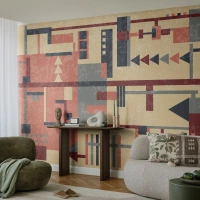 Fototapet Standard Eco - Geometrisk abstraktion i retrostil - 100x70cm - Kombination af vertikaler og niveauer - Moderne vægdekoration til stue og soveværelse ARTTOR