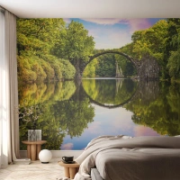 Fototapet Standard Eco - En stenbro spejlet i vandet, omgivet af grønne områder - 100x70cm - På mødet mellem to verdener - Moderne vægdekoration til stue og soveværelse ARTTOR