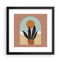 Vægur, Uret - En minimalistisk potteplante mod solens baggrund - 30x30cm - Små glæder - Moderne vægdekoration til stue, køkken og soveværelse ARTTOR