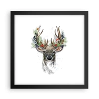 Vægur, Uret - Stiliseret hjort med dekorative gevirer - 30x30cm - I festlig påklædning - Moderne vægdekoration til stue, køkken og soveværelse ARTTOR