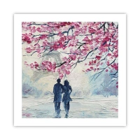 Plakat i ramme af lyst egetræ - Romantisk gåtur - 50x50 cm