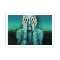 Plakat i hvid ramme - Nedsænket i blåt - 100x70 cm