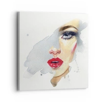 Vægur, Uret - Portræt af en kvinde i akvarelstil på en hvid baggrund - 30x30cm - Refleksion i en vanddråbe - Moderne vægdekoration til stue, køkken og soveværelse ARTTOR
