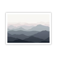 Plakat i hvid ramme - Bølger af bjerge - 100x70 cm